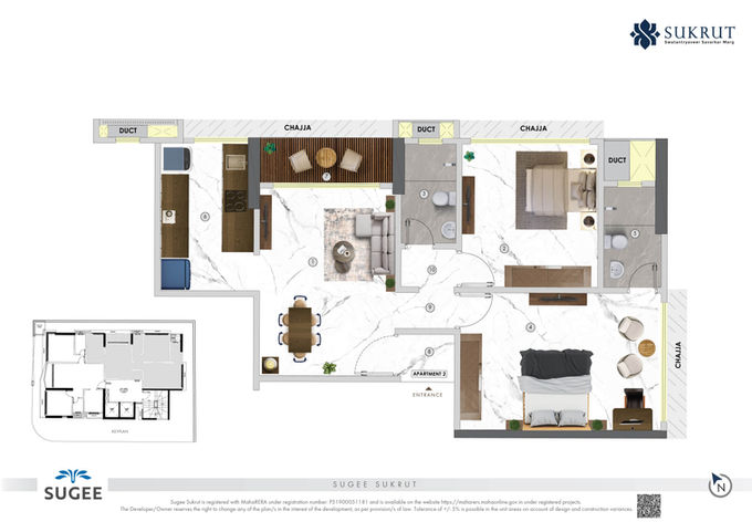 Sugee Sukrut has been registered via MahaRERA registration number: P51900051181 & its details are available on the website https://maharera.mahaonline.gov.in under registered projects. *T&C Apply.